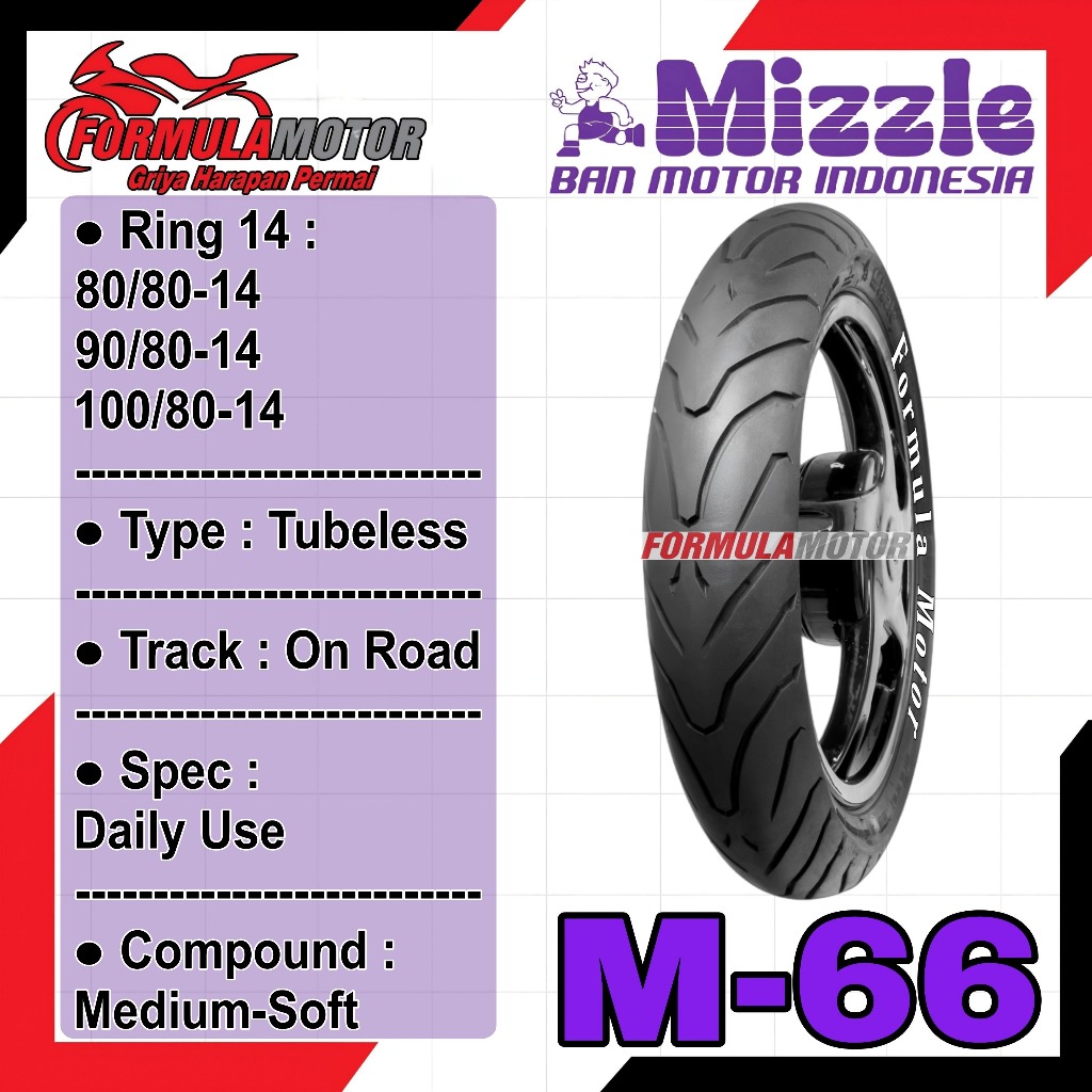 Mizzle M66 Ring 14 Tubeless All Size (Profil Donat) Ban Motor Matic Tubles