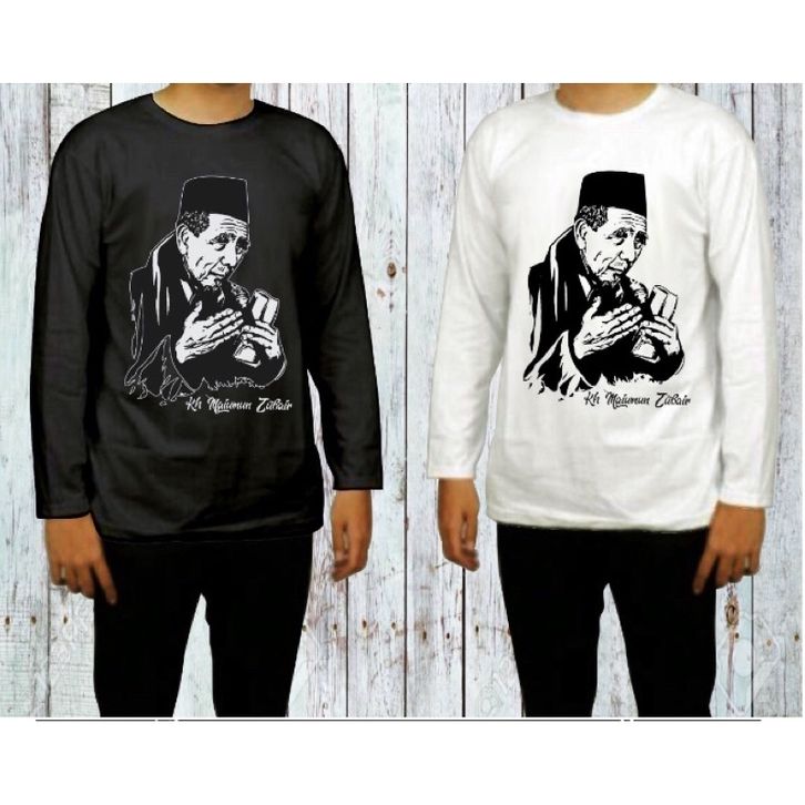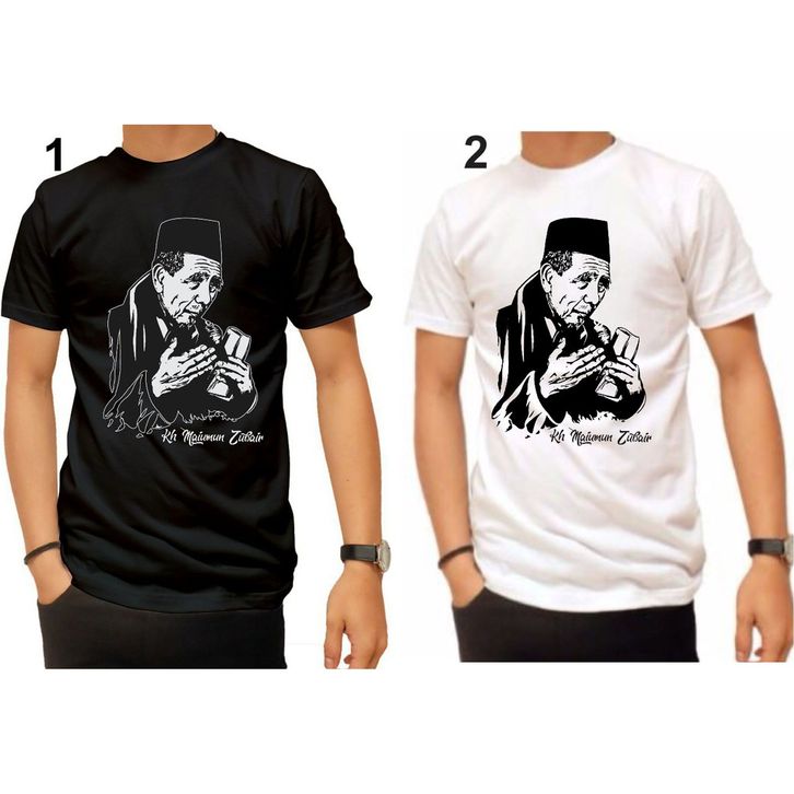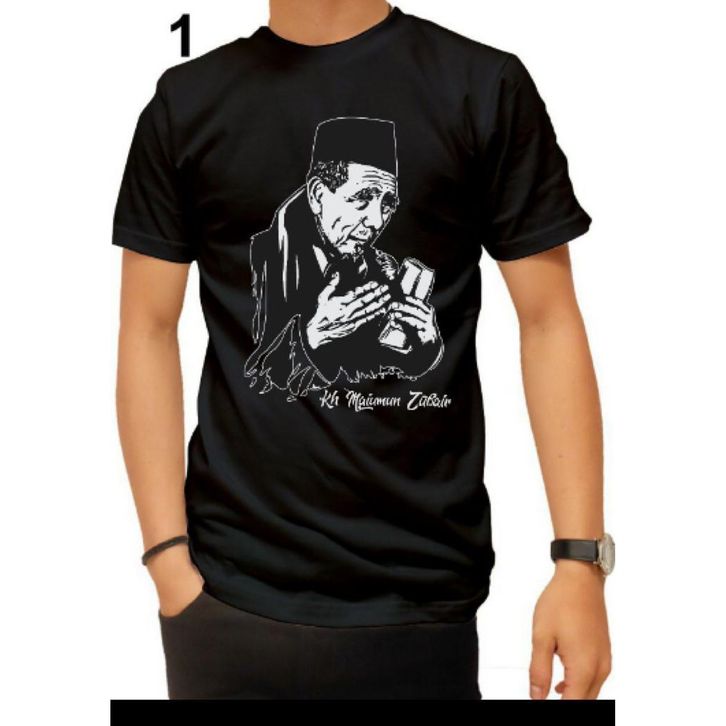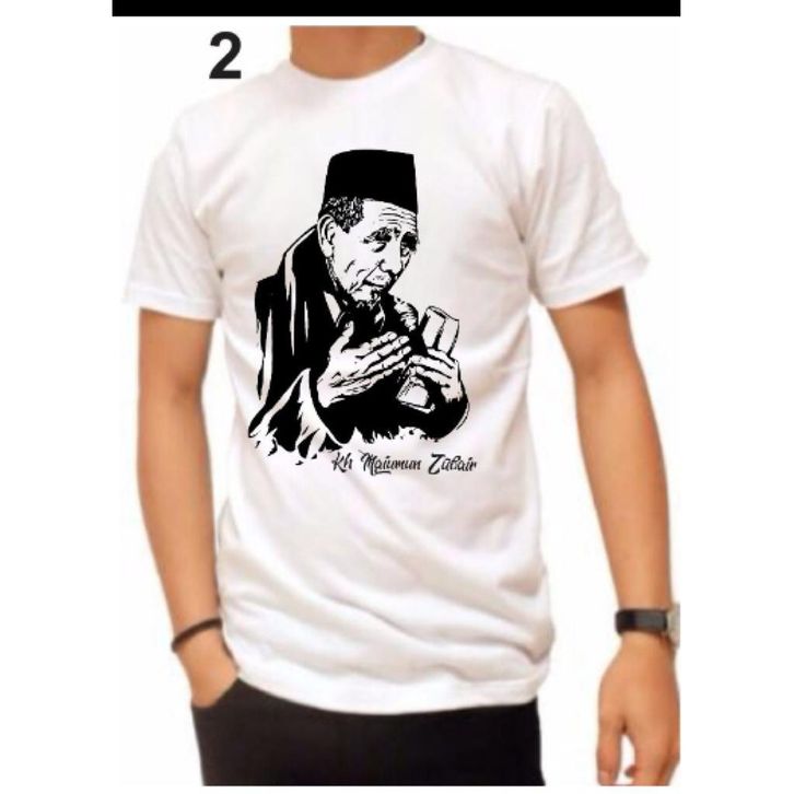 Kaos Dakwah Kh Maimun Zubair Tshirt Distro Santri Atasan Baju Islami Muslim Katun Combed Ukuran M L XL XXL Putih Hitam