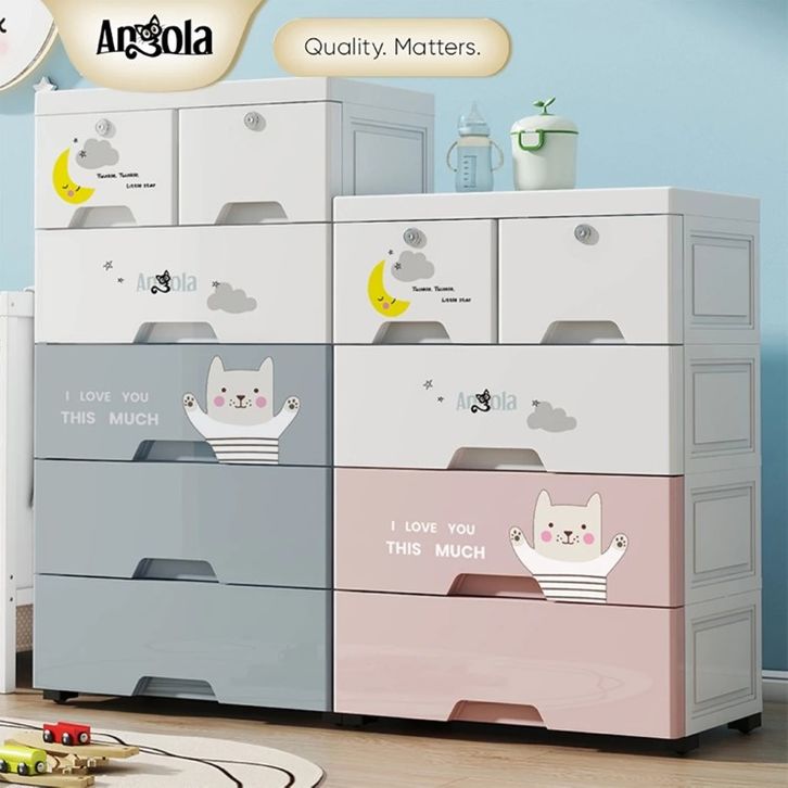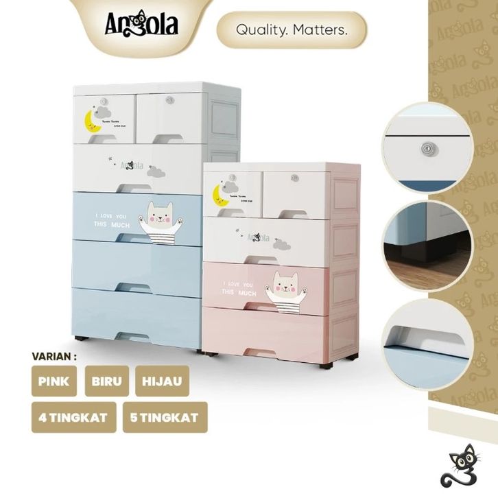 LEMARI PAKAIAN PLASTIK ANAK KARAKTER ANGOLA CEWEK COWOK CABINET 4 5 SUSUN PRAKTIS MUDAH DI PASANG CICILAN MURAH ORI