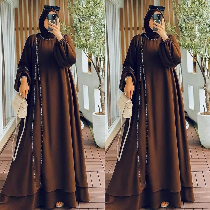 Gamis Ceruty Abaya Full Puring Aplikasi Payet Mutiara Mewah Abaya Terbaru 2026 Abaya Lebaran 2026