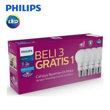TERLARISSS LAMPU LED PHILIPS 8W 8 WATT MULTIPACK (1 PAKET ISI 4 LAMPU)
