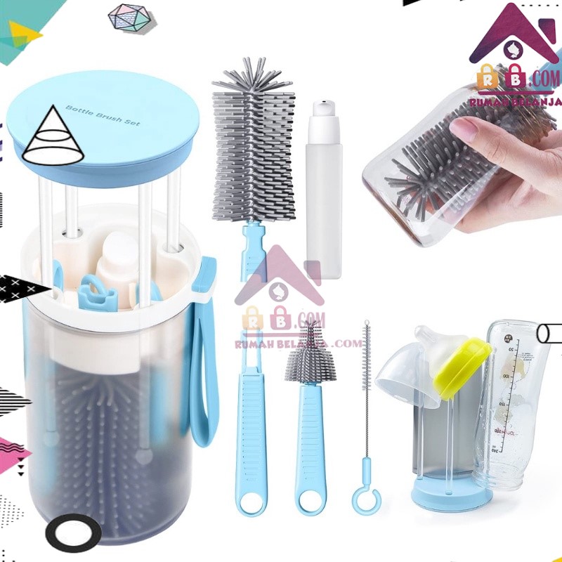 Baby Bottol 6 in 1 Set / Sikat Botol Silikon Travel / Pembersih Susu Portabel / Rak Pengering Portabel Mu