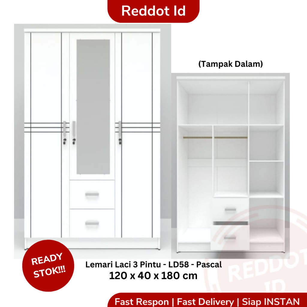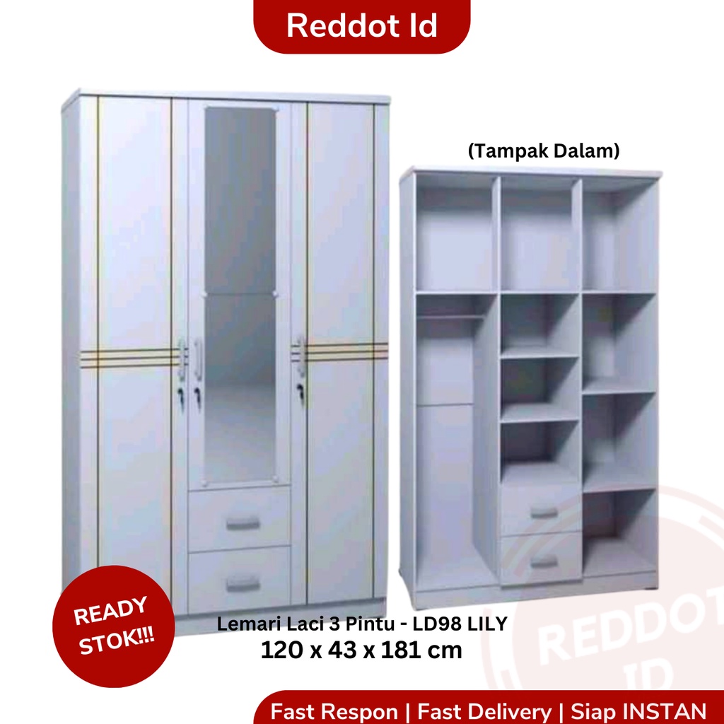 Lemari Pakaian Dewasa Red Modern Minimalis 2 Pintu dan 3 Pintu Banyak Pilihan Motif