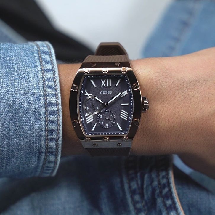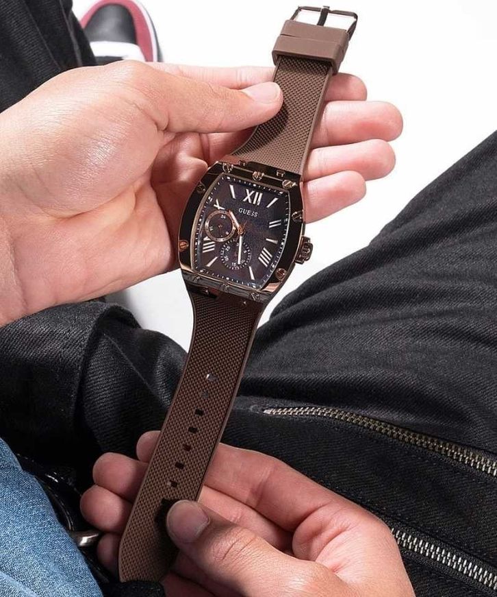 GUESS GW058G1 Jam Tangan Pria Analog FALCON Rubber Brown Coffee