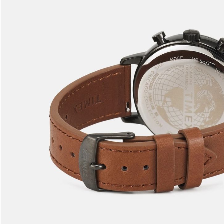 TIMEX TW2W1200 Jam Tangan Pria Analog Chronograph Leather Brown 45mm