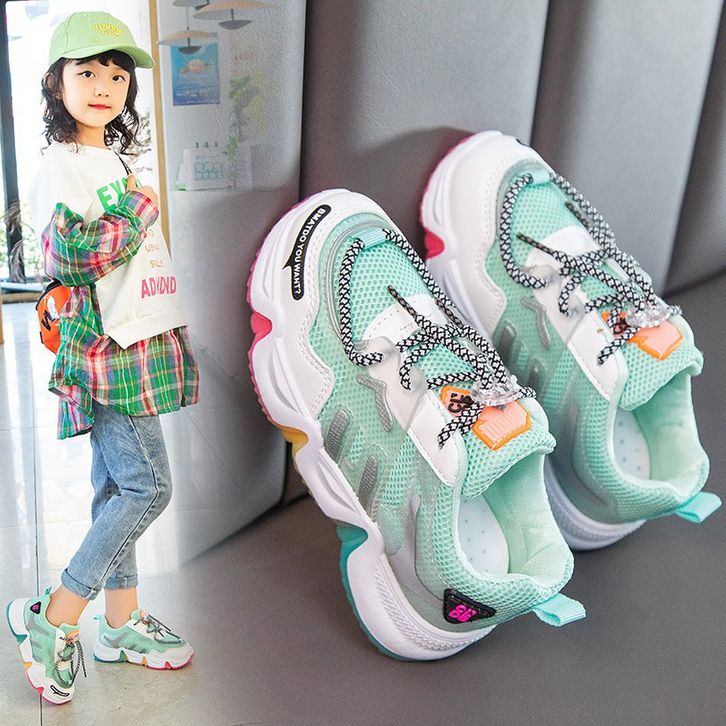 Sepatu sneakers anak laki-laki dan perempuan model tali sepatuwarna warni import new