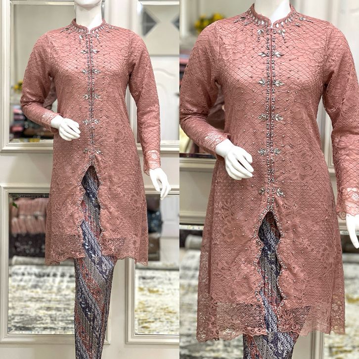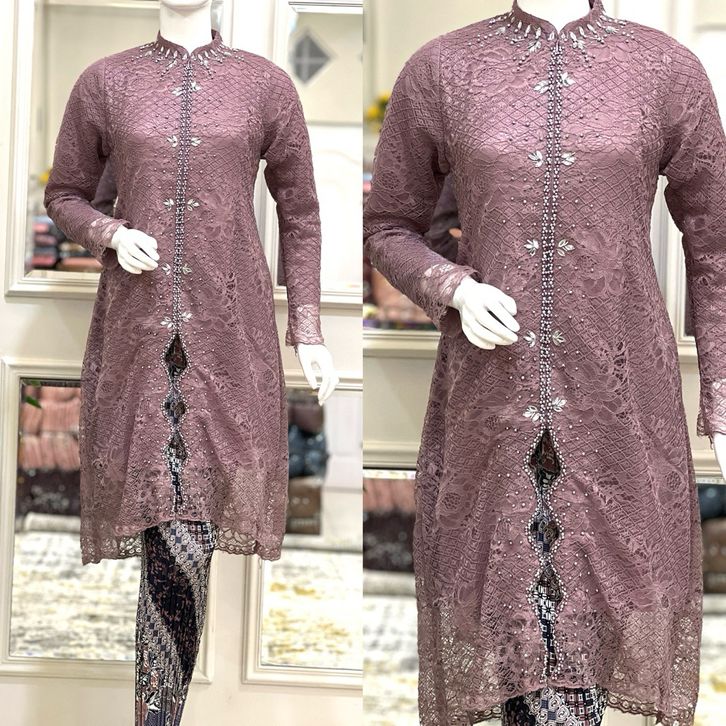 Kebaya Tunik Modern Zigzag Kombinasi Payet & Brokat – Busana Muslim Wanita Elegan Cocok untuk Acara Formal Pesta Wisuda
