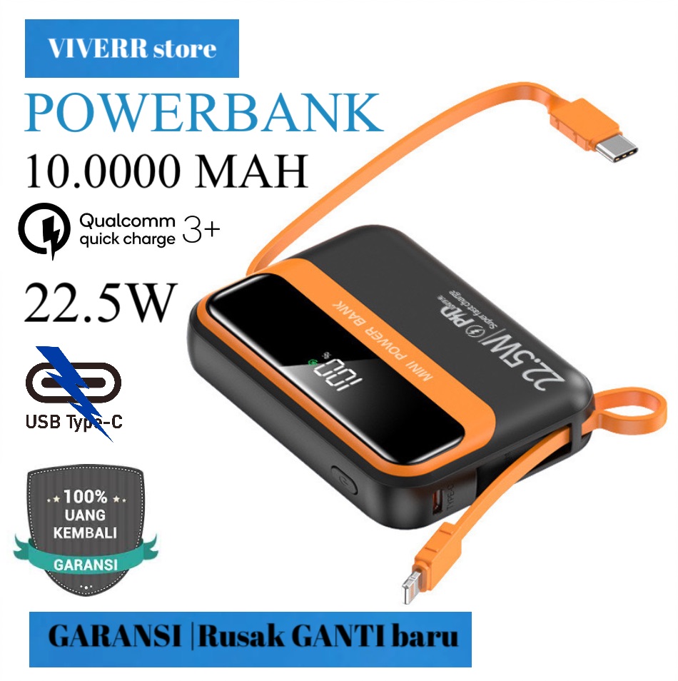 Powerbank A7 kapasitas 10.000 mAh fast charging 22.5W PD3.0 with 2kabel (Type C dan Lightning) garansi 1 Tahun.