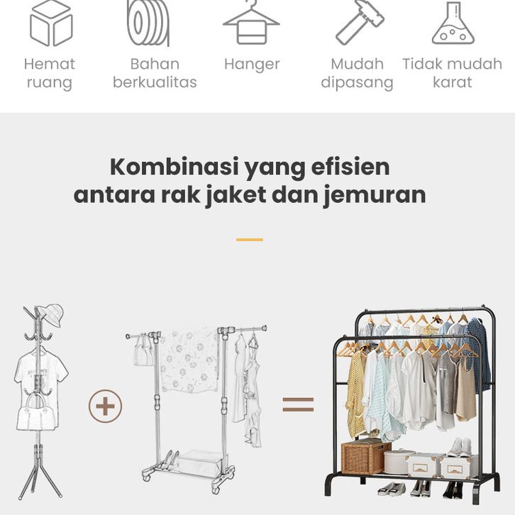 Muzy Stand Hanger Baju Rak Gantung Pakaian Stainless Rak Portable Serbaguna HSH101