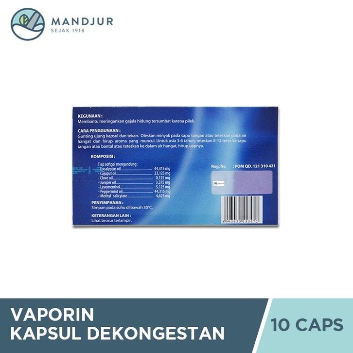 KAPSUL INHALASI VAPORIN KAPSUL DEKONGESTAN ISI 10 KAPSUL LUNAK ORIGINAL UNTUK DI HIRUP