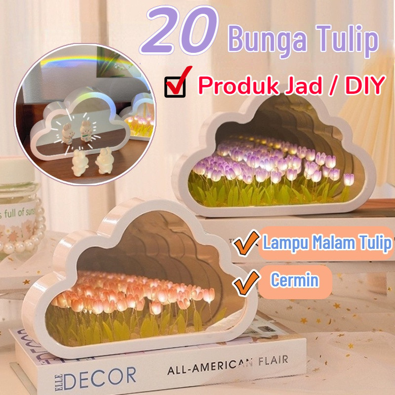 20 Tulip READY Tulip Malam Lampu Led Kamar Tidur Ins DIY Untuk Dekorasi Hadiah Liburan Cermin Dengan Bingkai Foto