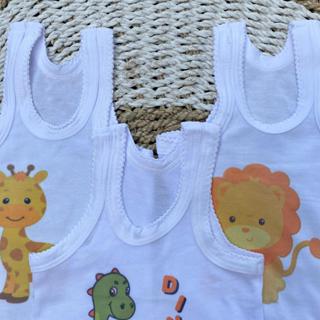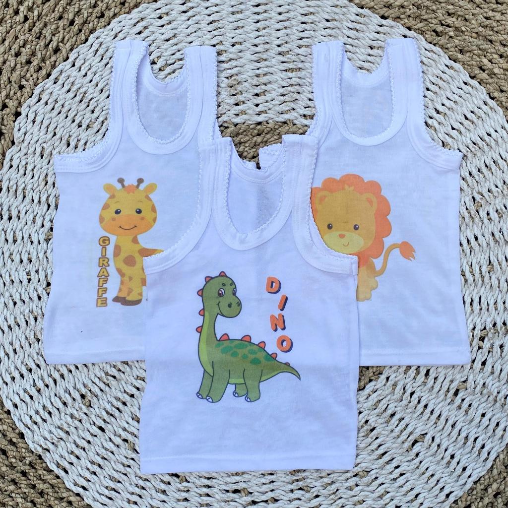 6/12 PCS Kaos Dalam Singlet Putih Motif Binatang DNW BABY