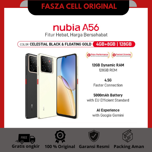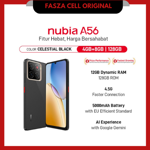 Handphone nubia A56 ROM 128GB RAM 12GB (4+8GB) Smartphone Kamera AI 13MP Triple Camera Layar 6.75" 90Hz, Baterai