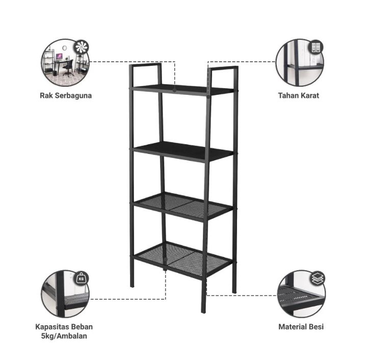 INFORMA LIBIE RAK BESI 4 TINGKAT - HITAM STORAGE RACK METAL TEMPAT PENYIMPANAN SERBAGUNA RAK PAJANGAN BARANG