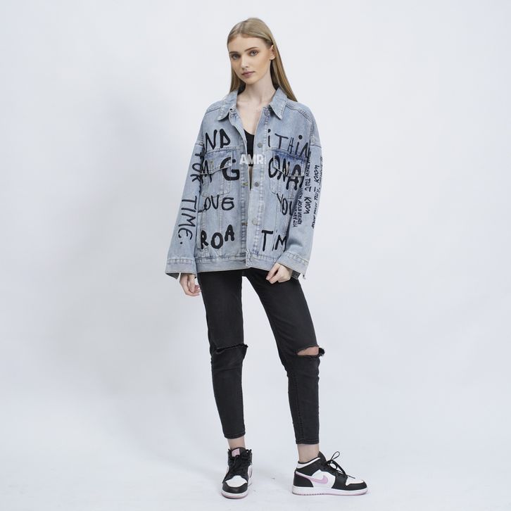 JACKET JEANS WANITA OVERSIZE TOXIC AMR ORIGINAL MG LOVE HITAM 517 KUALITAS TERBAIK JAKET WANITA KEKINIAN BAHAN PREMIUM