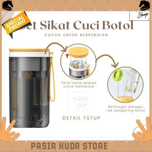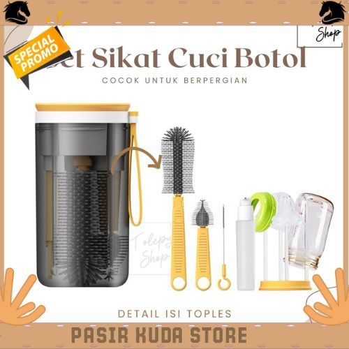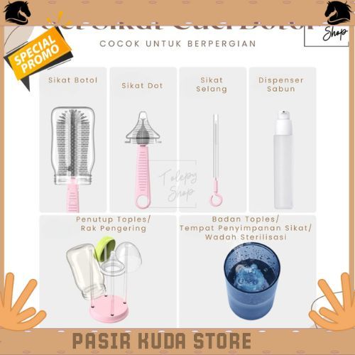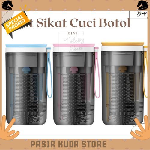 6 in 1 Premium Portable Baby Bottle Brush / Perlengkapan Cuci Botol Bayi Travel Best Seller