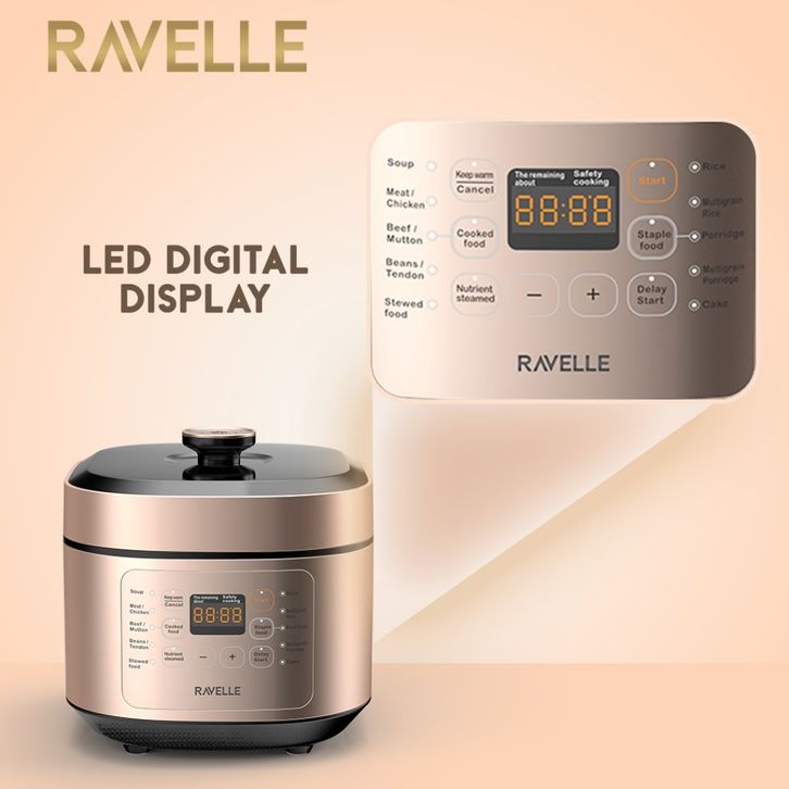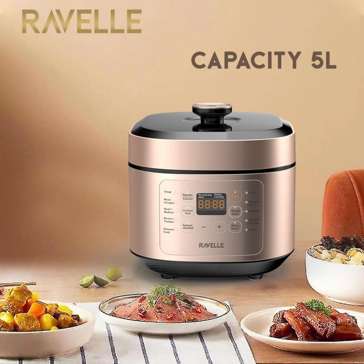 RAVELLE Pressure Cooker 5 Liter Panci Presto Multifungsi Low Watt Champagne KUALITAS TERBAIK