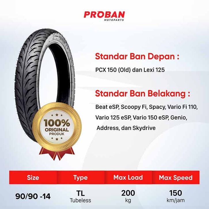 PROBAN TL 90/90 Ring 14 Ban Motor Tubeless Original Termurah