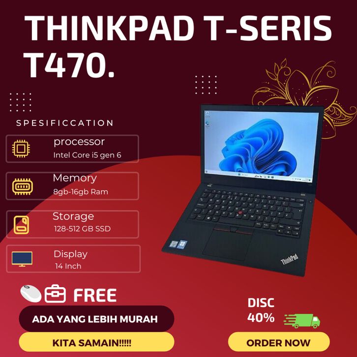 Laptop Lenovo Thinkpad T480 Intel Core i5 Thinkpad T450/T460/T470/T490 Ram 8 Ssd 256 Bergaransi LIKE NEW