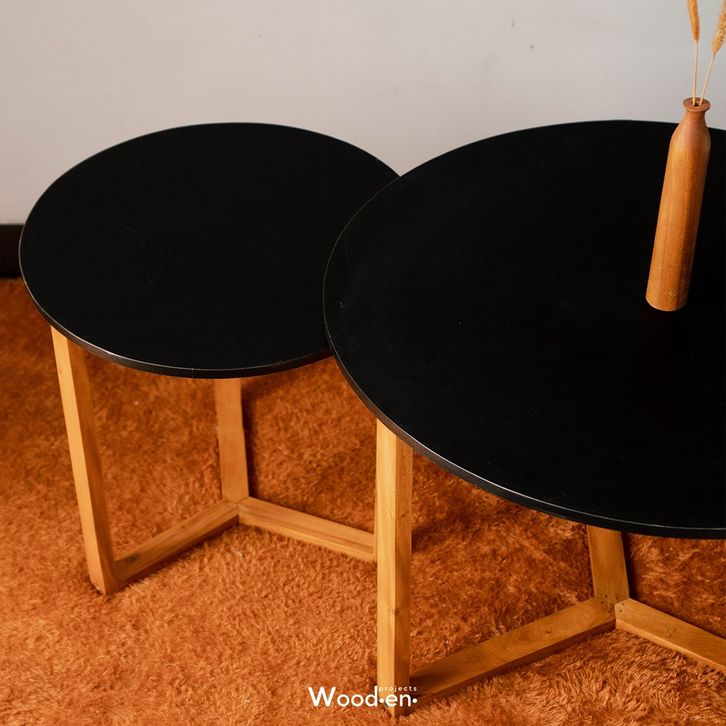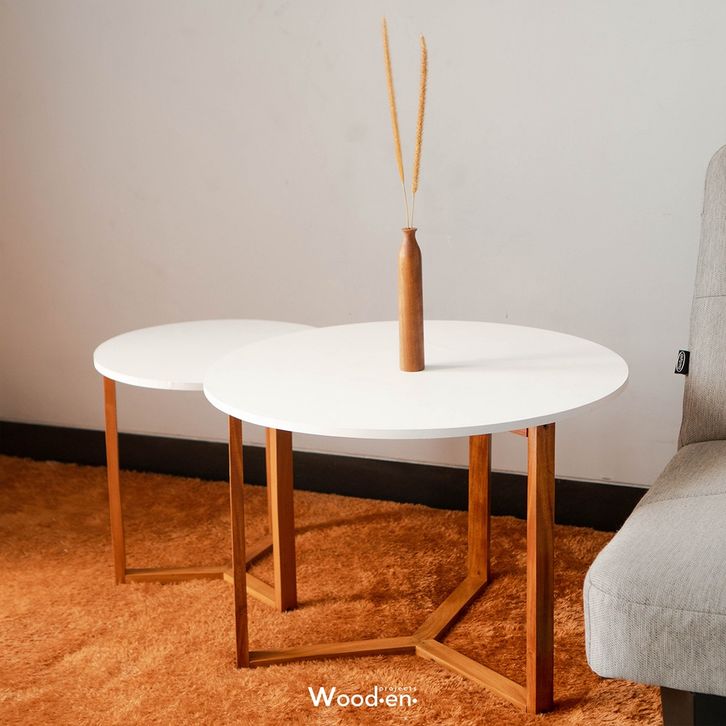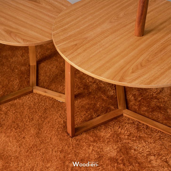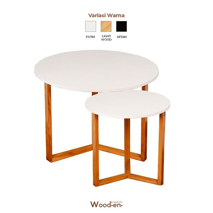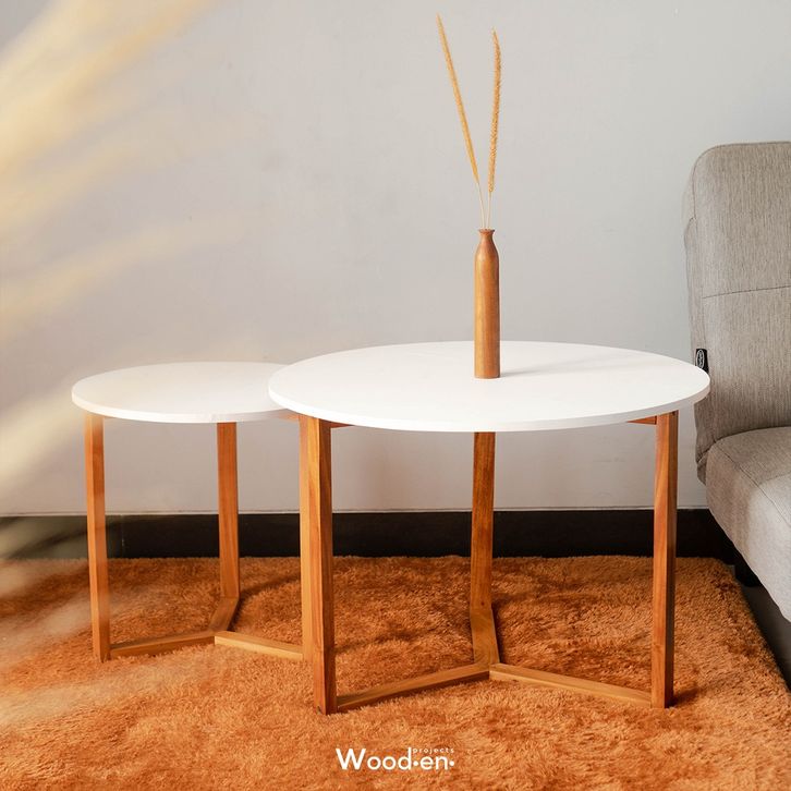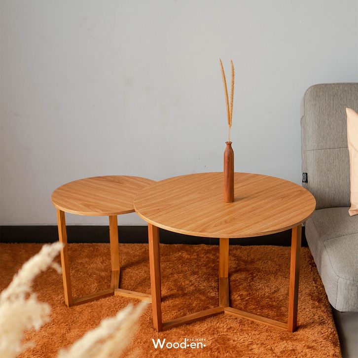 Meja Bulat Sudut Ruang Tamu Keluarga Belajar Lesehan Serbaguna Nakas Laptop Rumah Rakit Kayu Minimalis Aesthetic