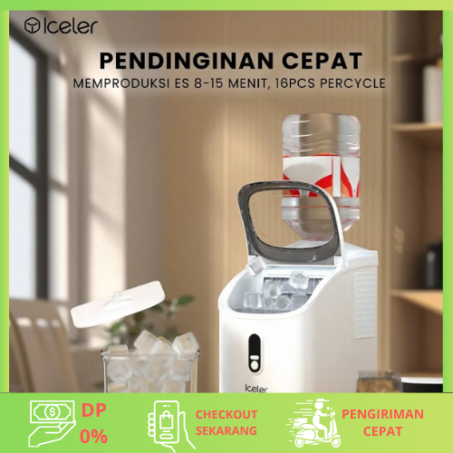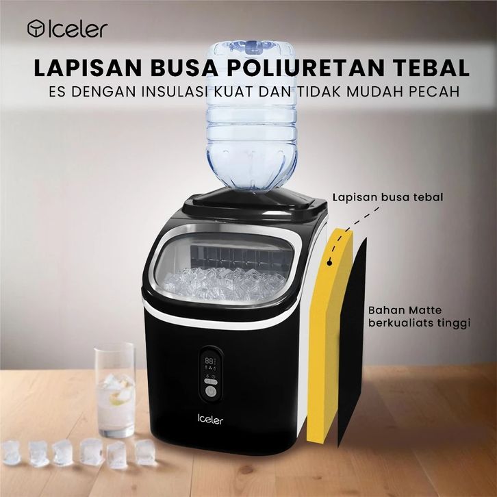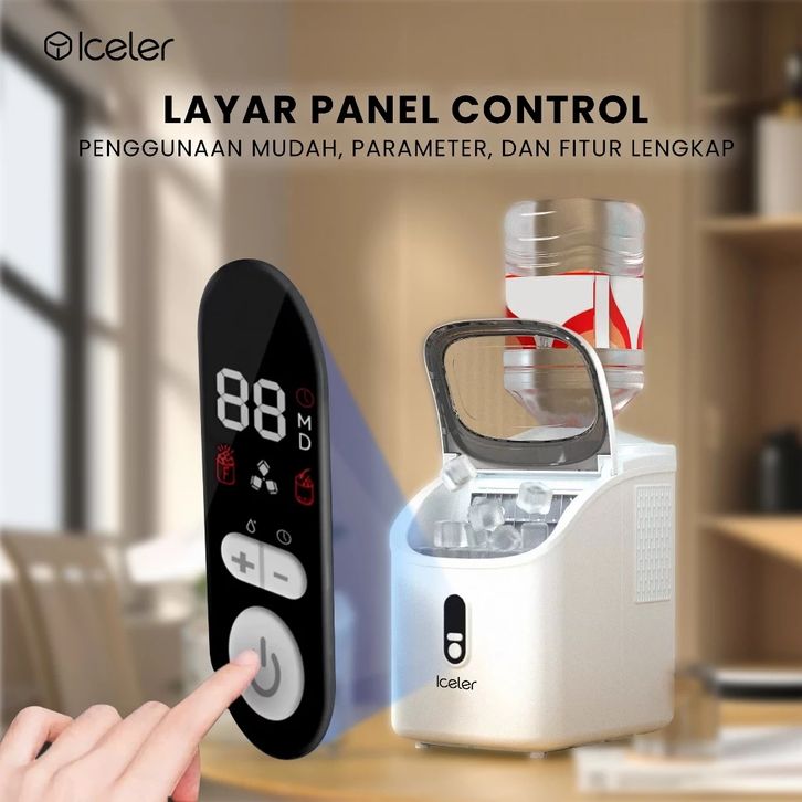 Iceler Mesin Es Cube Ice Maker 3 Pilihan Input Air 10~15 Menit Es Jadi Setting Timer Atur Ketebalan Es Automatic Cleanin