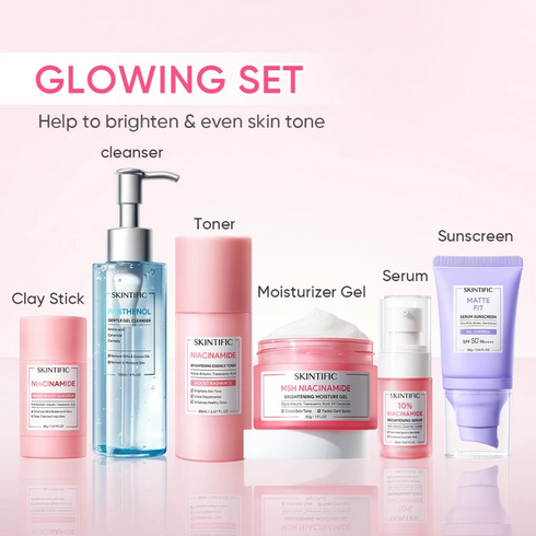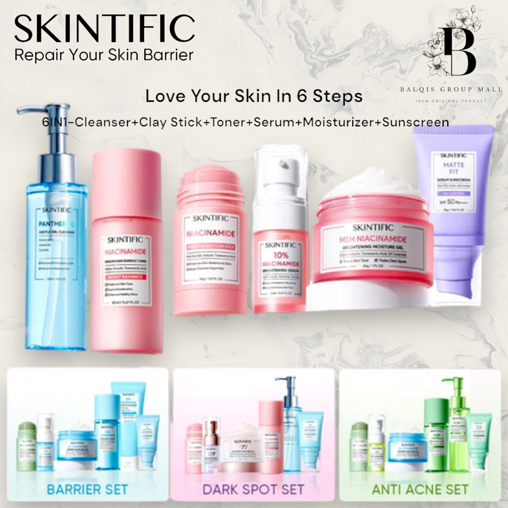 SKINTIFIC 6pcs Paket Skincare Set | Serum Moisturizer Gel Toner Sunscreen Cleansing Mousse Facial Wash