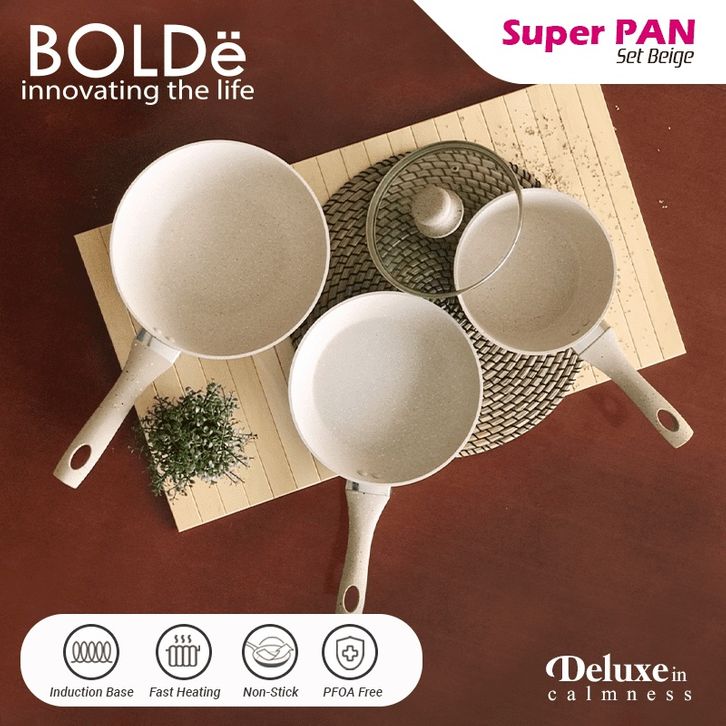 teflon anti lengket BOLDE SET WAJAN SUPER PAN BEIGE panci set anti lengket panci PRESTO VICENZA PELUNAK DAGING
