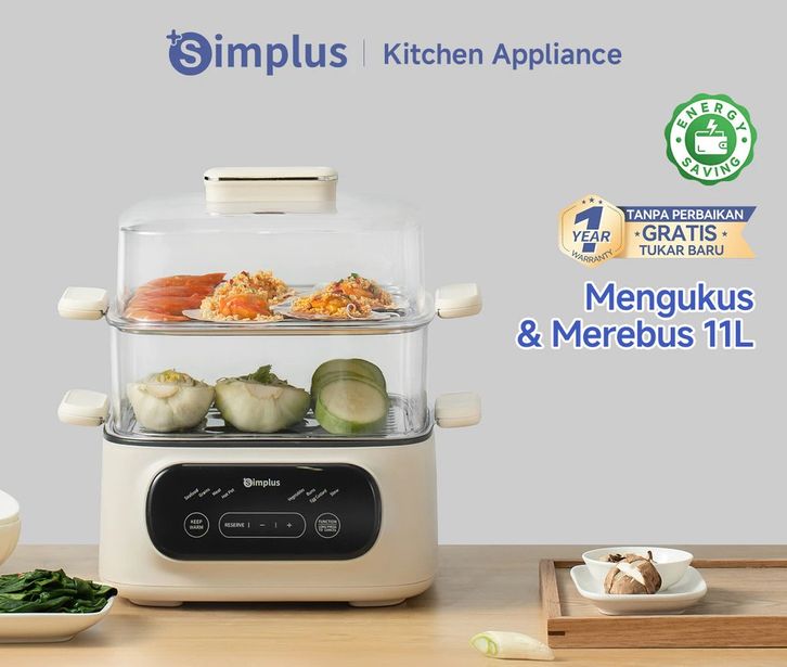 Kukusan Listrik Elektrik 2 Tingkat Kapasitas 11L Nampan Stainless Steel