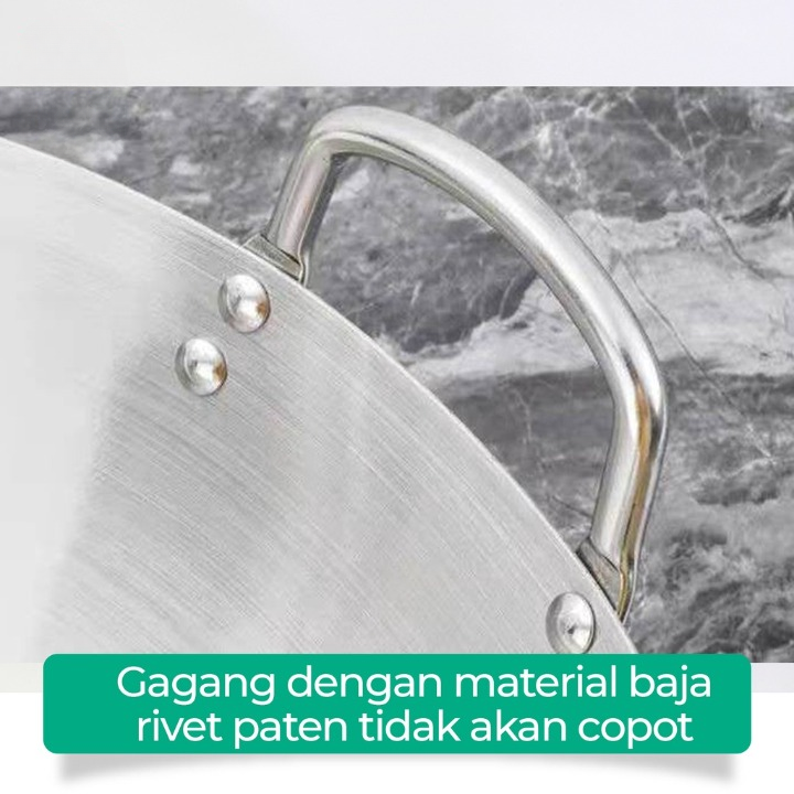 Wajan Stainless 555 Tebal Kuali Premium dengan Pegangan Stainless Steel Kuali Besar Katel Anti Lengket