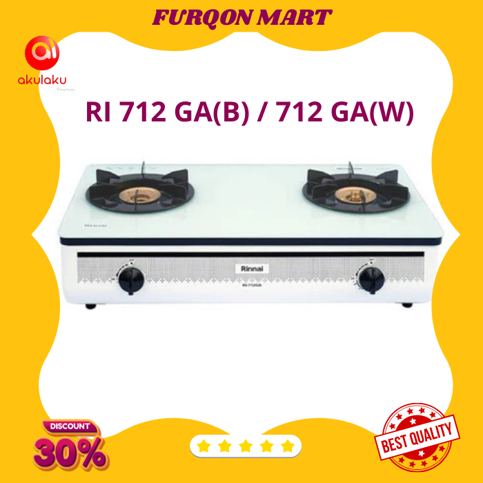 [Mall]KOMPOR GAS RINNAI 2 TUNGKU TURBO FREE SELANG RAGULATOR TERBARU RI 712 GA(B)712 GA(W) KOMPOR RINNAI KACA ELEKTRONIK