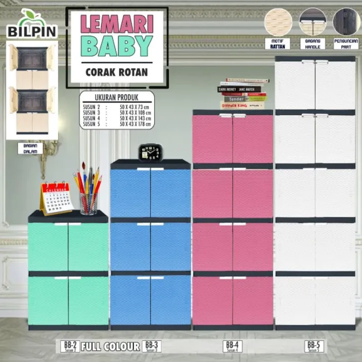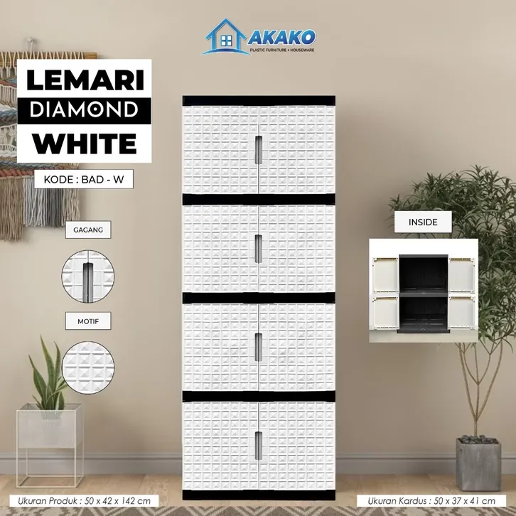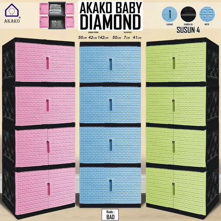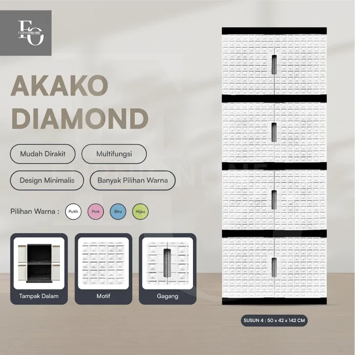 LEMARI PLASTIK BERKUALITAS 2024 AKAKO LEMARI PLASTIK 4 SUSUN JUMBO ROTAN + KACA BILPIN SERBAGUNA