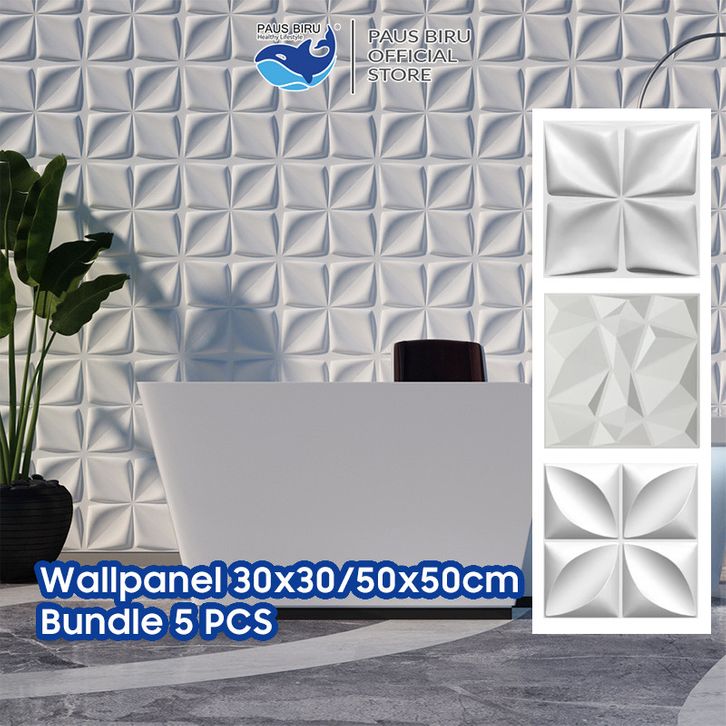Paus Biru - PAKET ISI 5 PCS!!! Wall Panel 3D PVC Wallpaper Dinding Wallpanel 50X50cm/30x30cm A13