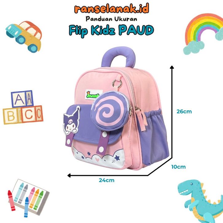 Flips Kidz Batita 1- 3 Tahun Tas Batita Balita Premium Viral San Martin Fashion Kuromi Tas Sekolah Anak Super Lucu