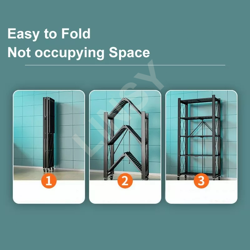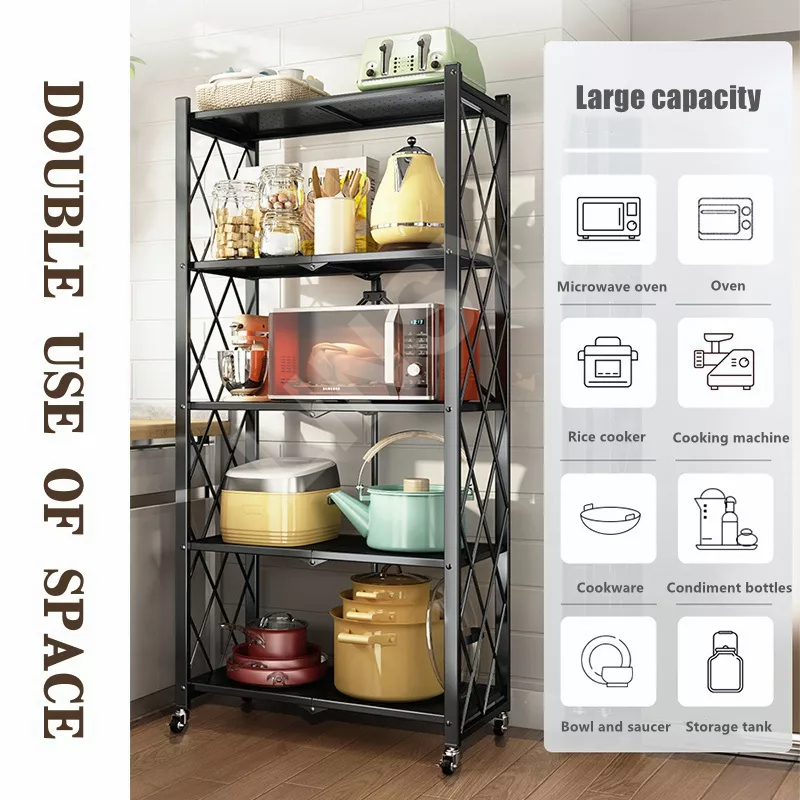 Rak Dapur Multifungsi Tanpa Instalasi 5 Lapisan Rak Penyimpanan Lipat Serbaguna