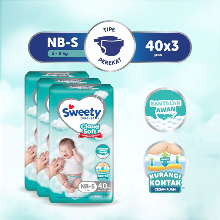 Paket 3 Ball Sweety Silver Pants Tape Popok Bayi Perekat NBS40 S38 M32 L28 XL24 XXL22