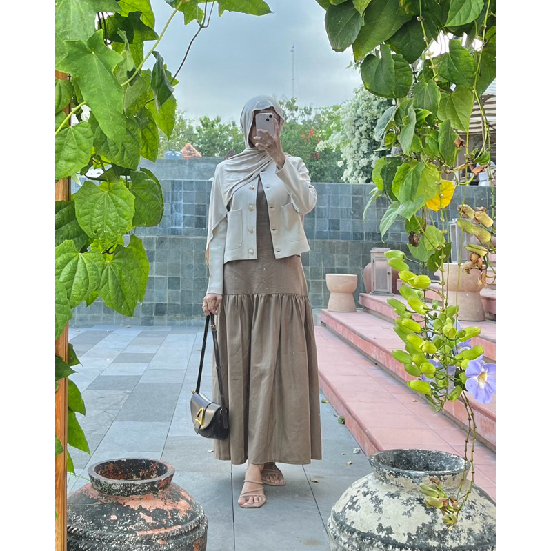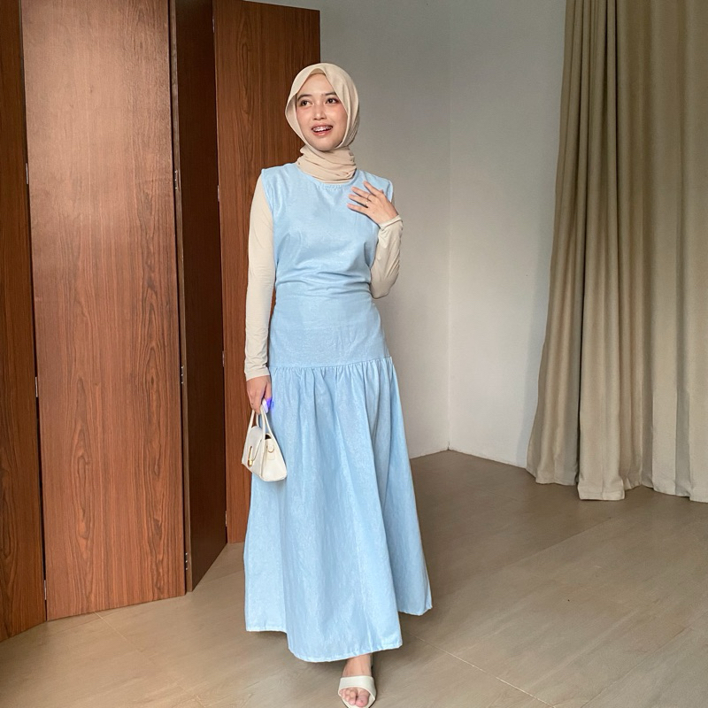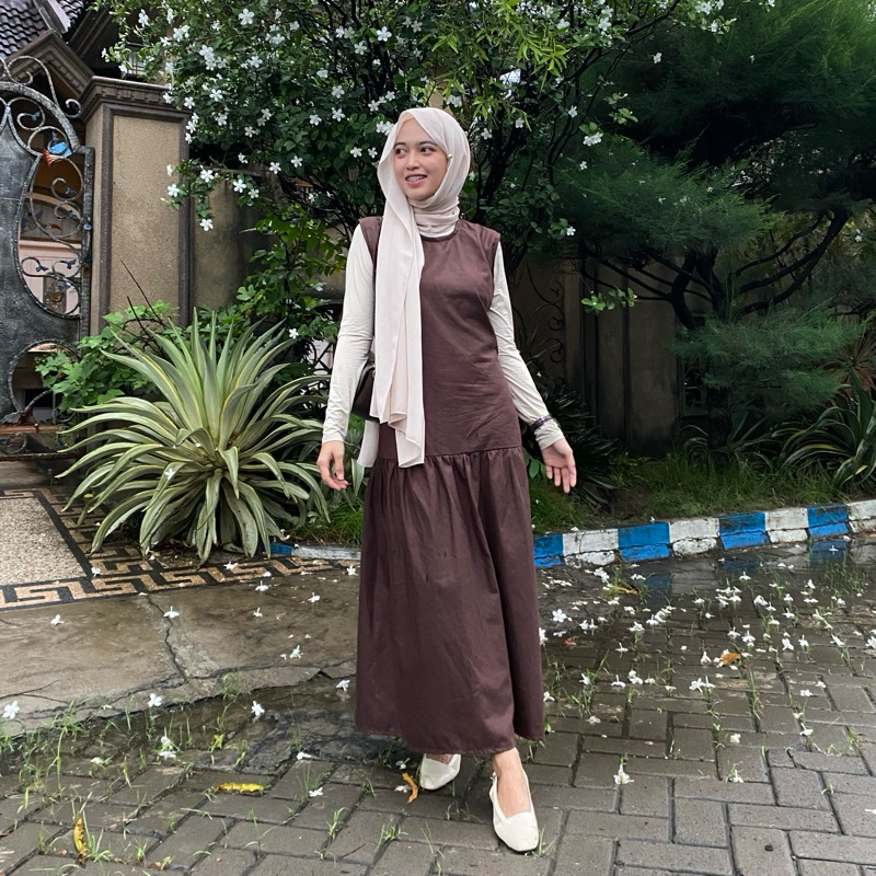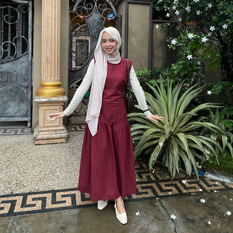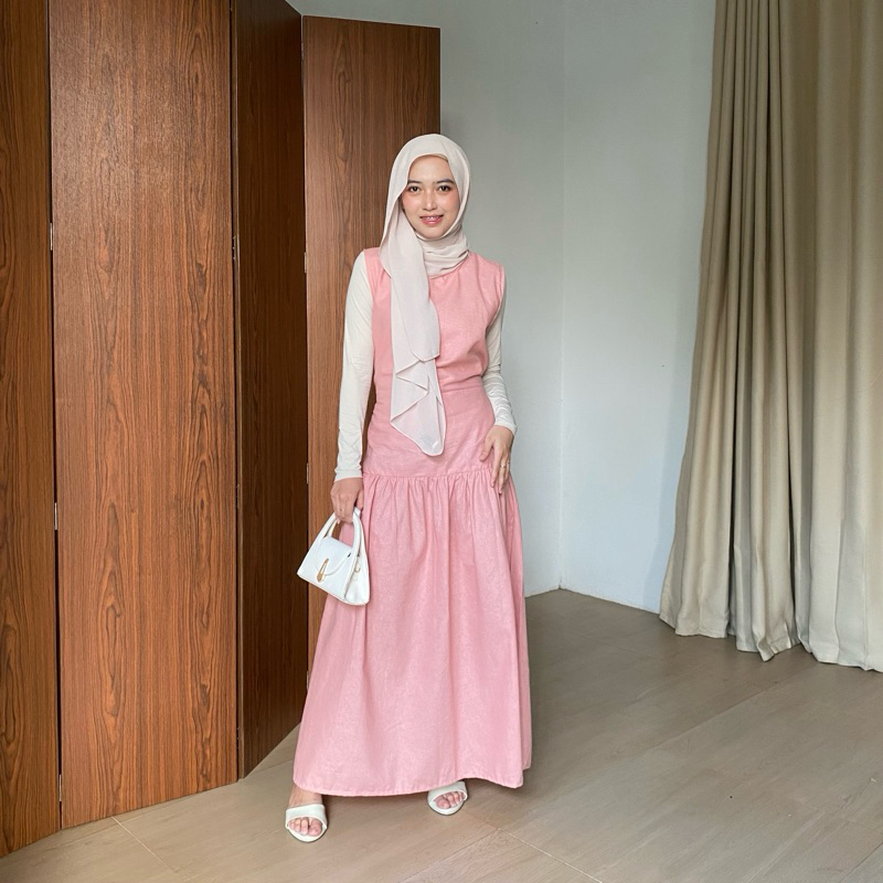 Inner Dress Wanita Korean Style Dres Linen Tanpa Lengan Terbaru Kekinian Best Seller