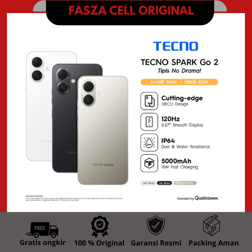 Handphone TECNO SPARK Go 2 4GB+4GB*/128GB, IP64, 6.67" HD+, 120Hz Smooth Display, 5000mAh, 18W Charging, Freelink Commun