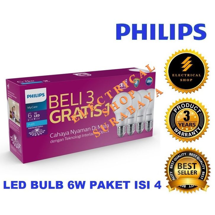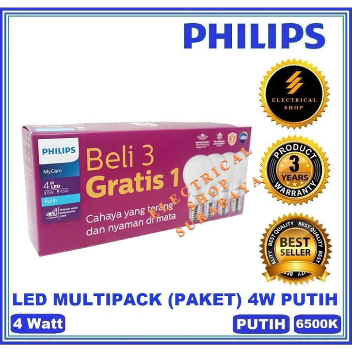 PAKET ISI 4 LAMPU PHILIPS LED 4W 6W 8W 10W 12W 5W 7W 9W 11W ISI 3 BRIGHT 13W BUNDLING MULTIPACK MYCARE ESS BULB GROSIR