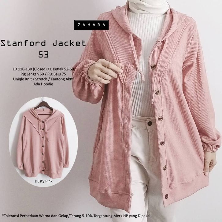 ATASAN JAKET WANITA CANTIK MOTIF POLOS JACKET HOODIE TERBARU STANDFORD 28 MACAU BY ZAHARA
