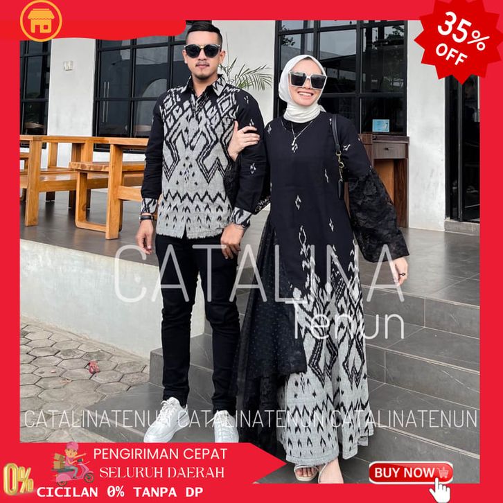 couple tenun SET COUPLE TENUN KINAR DRESS BLACK SET BAJU TENUN KONDANGAN baju kondangan couple terbaru