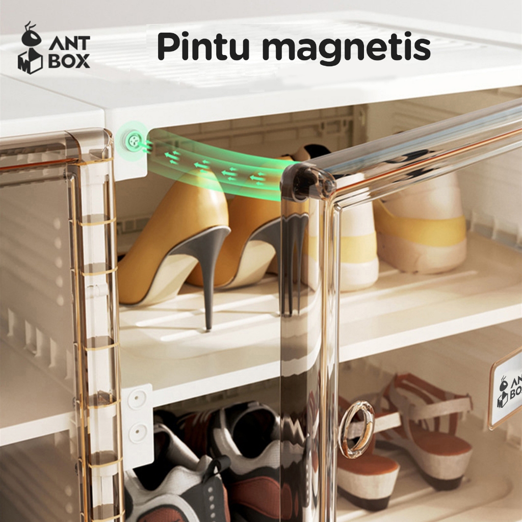 ANTBOX Lemari Sepatu Boots Tas Kapasitas 12-36 Pasang Sepatu Rak Sepatu Tertutup Pintu Magnet Transparan Lemari Lipat