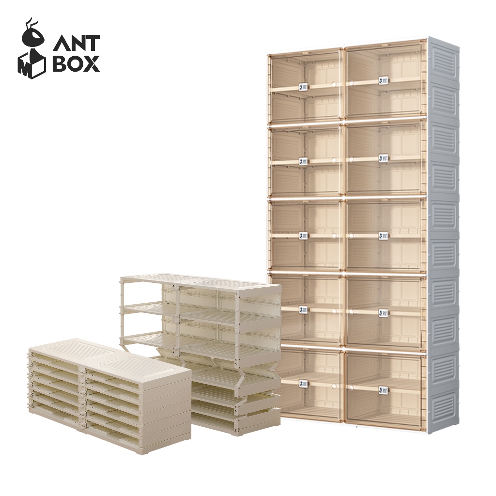 ANTBOX Lemari Sepatu Ready Stock Kapasitas 16-40 Pasang Sepatu Kabinet Serbaguna Lemari Sepatu Plastik Lipat Bebas