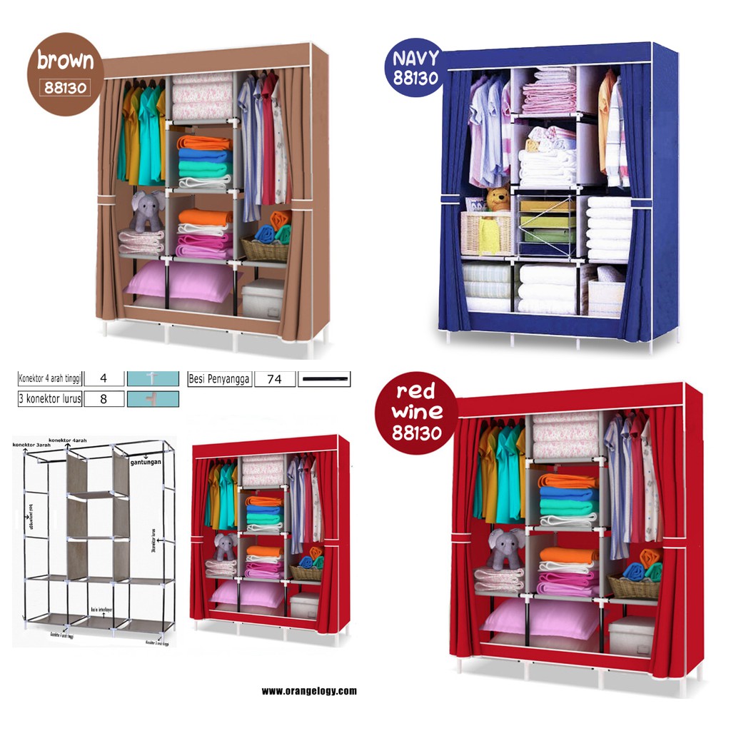 Lemari Pakaian Kain Portable Jumbo 88130 Lemari 3 Sekat serbaguna Lemari Baju anak kost lemari hemat tempat