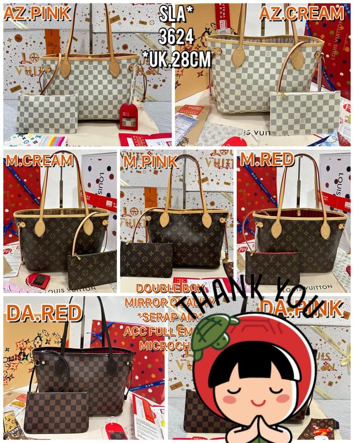 TAS LV NEVERFULL MM KULIT ASLI MIRROR VVIP/TAS WANITA ELPONG TOTE 28CM/TOTEBAG/TAS BRANDED PROMO
