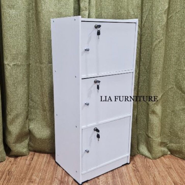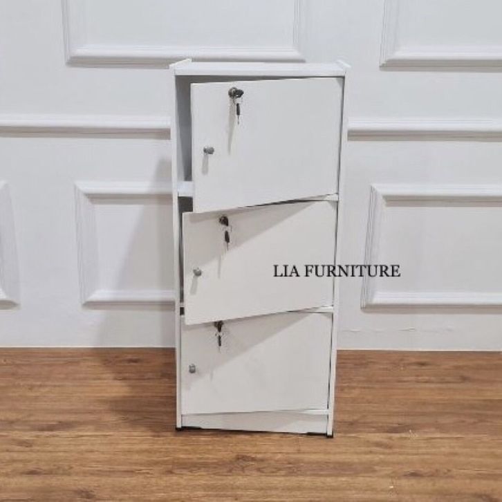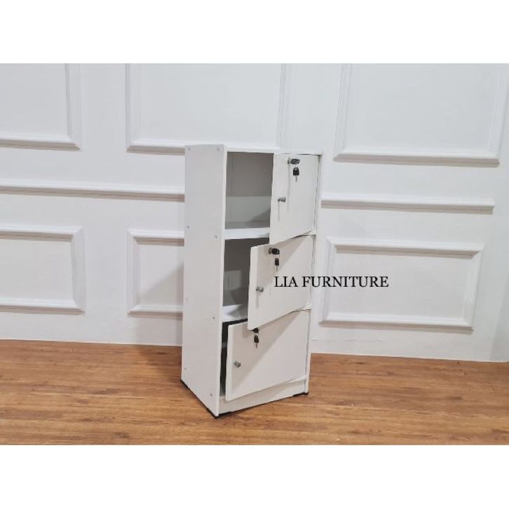 RAK SERBAGUNA LEMARI BUKU RAK BUKU 3 SUSUN PINTU PUTIH FULL KUNCI KAYU