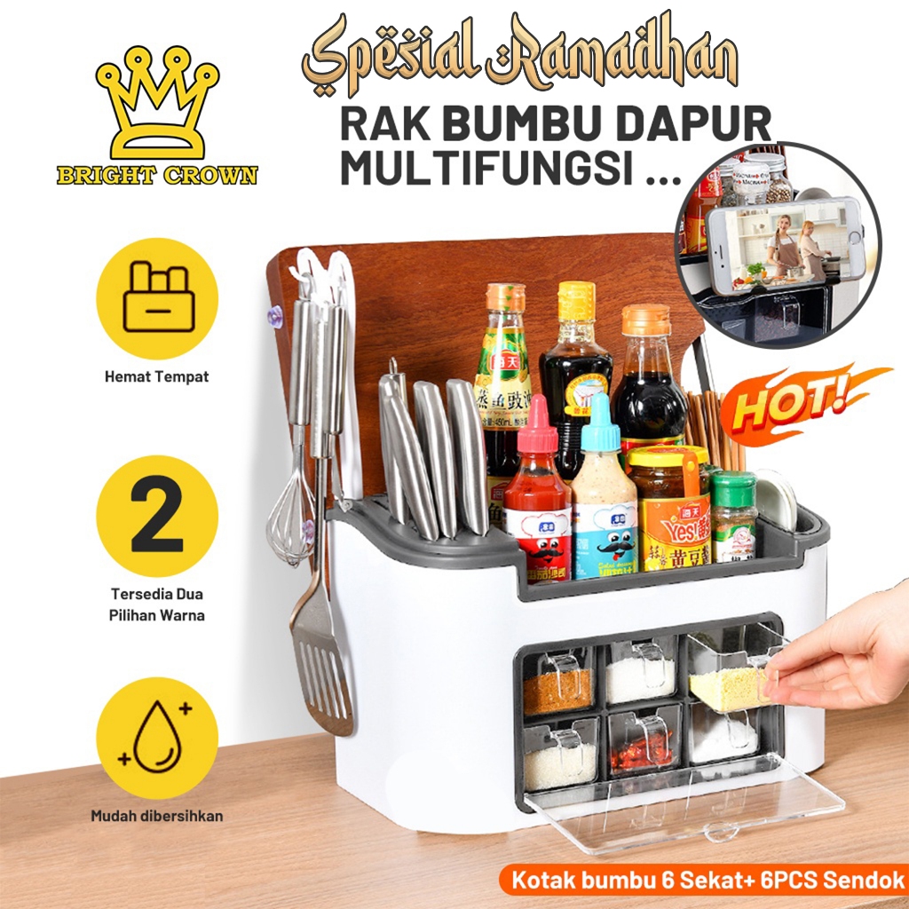 Rak Bumbu Dapur All in 1 6 Laci FREE 6 Pcs Sendok Bumbu + Tempat Pisau / Multifunctional Kitchen Shelf Temp