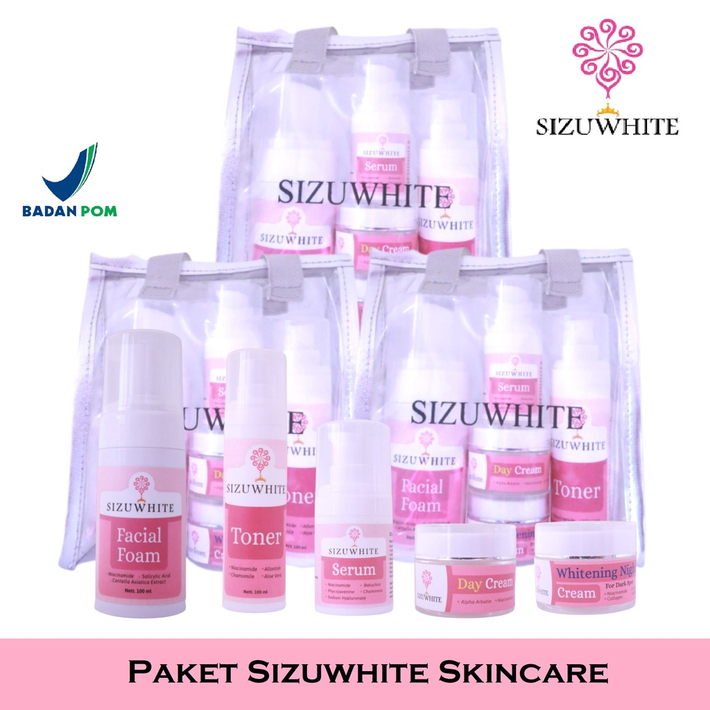 SIZUWHITE Beauty Skincare Bpom 1 Paket Kecantikan Daycream Toner Serum Night Cream Facialfoam Glowing Pemutih Wajah Cepa