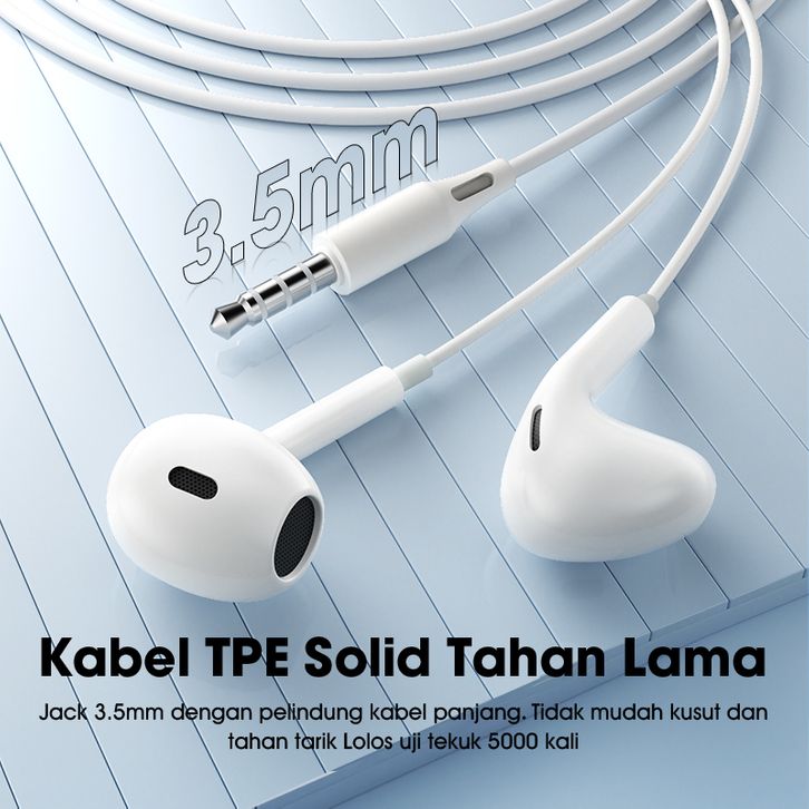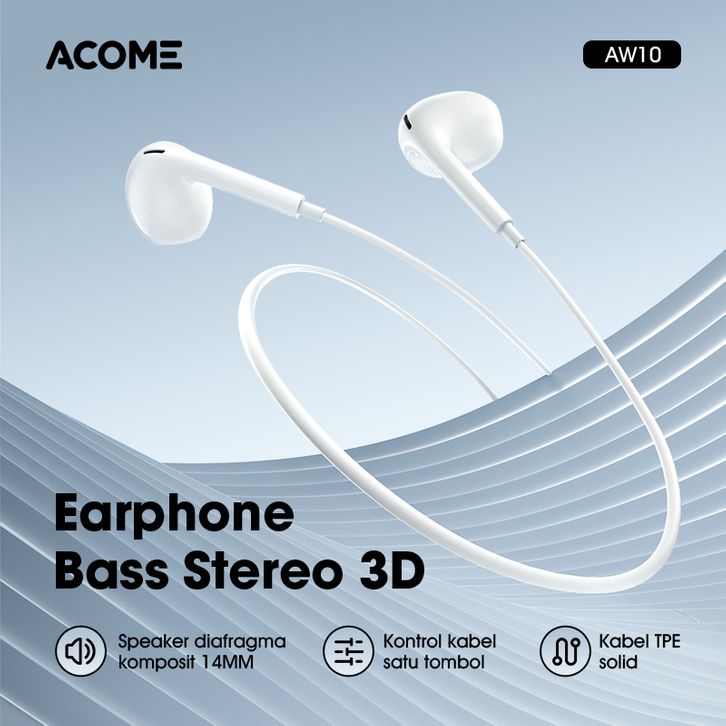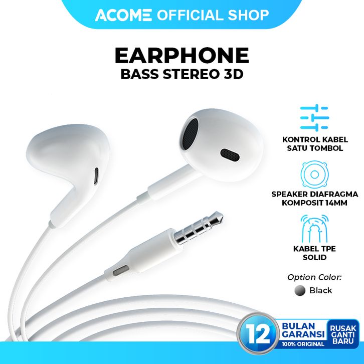 ACOME Wired Earphone Headset Stereo 3D Bass Jack 3.5mm, Mic, Semi In-Ear AW10 Garansi 1 Tahun
