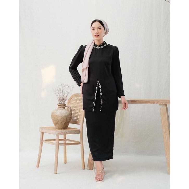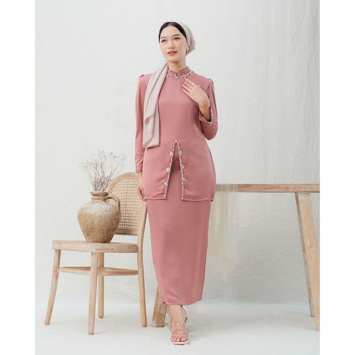 baju kurung melayu Oneset Eliza Baju Kurung Melayu Dress Pesta Setelan Wanita Baju Kondangan Kekinian Full Payet 2024