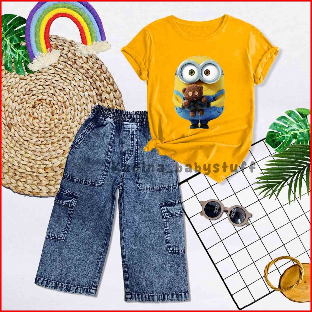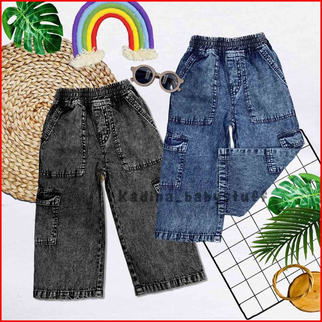 Setelan Kulot Cargo Jeans Anak Perempuan Setelan Cargo Anak Kulot Cargo Anak Perempuan Celana Panjang Anak
